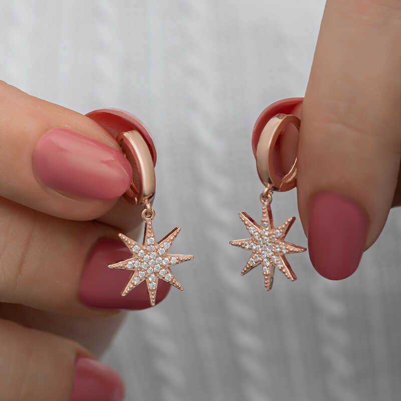 Gümüş Rose Sallantılı Kutup Yıldızı Kadın Küpe