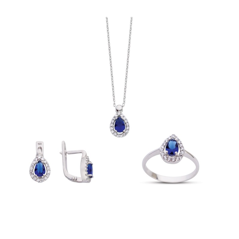 Damla Safir Rengi Anturaj Beyaz Gümüş Set GMS135