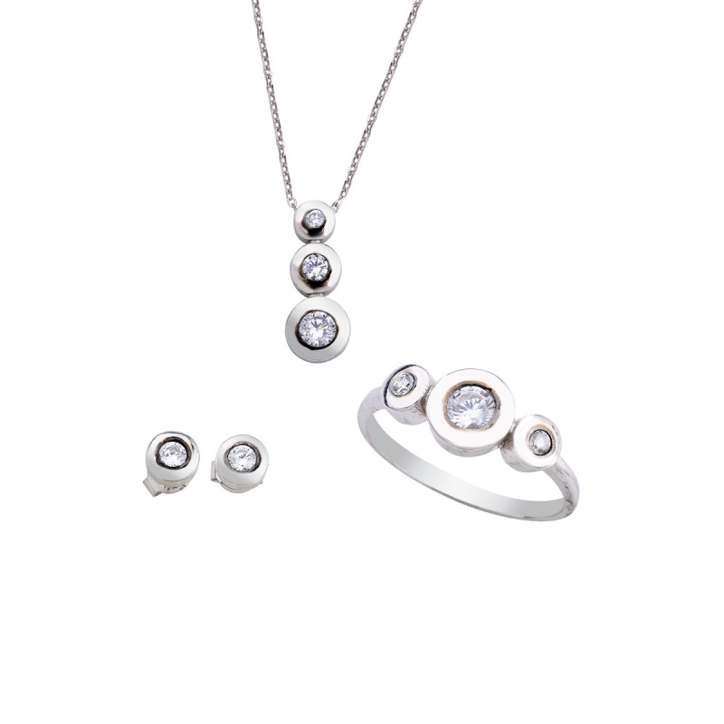 Pırlanta Montür Sıvama Tria Beyaz Gümüş Set GMS154