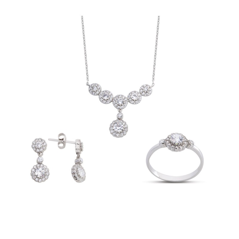 Sallantılı Anturaj Çiçek Beyaz Gümüş Set GMS156