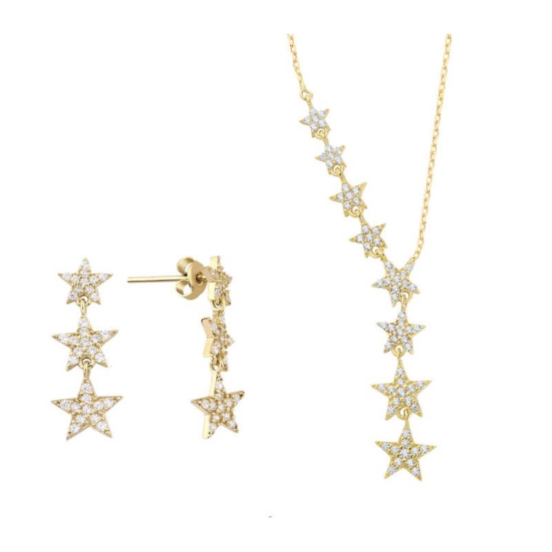 Takım Yıldızı İkili Sarı Renk Gümüş Set Üçlü Küpe GMS2093