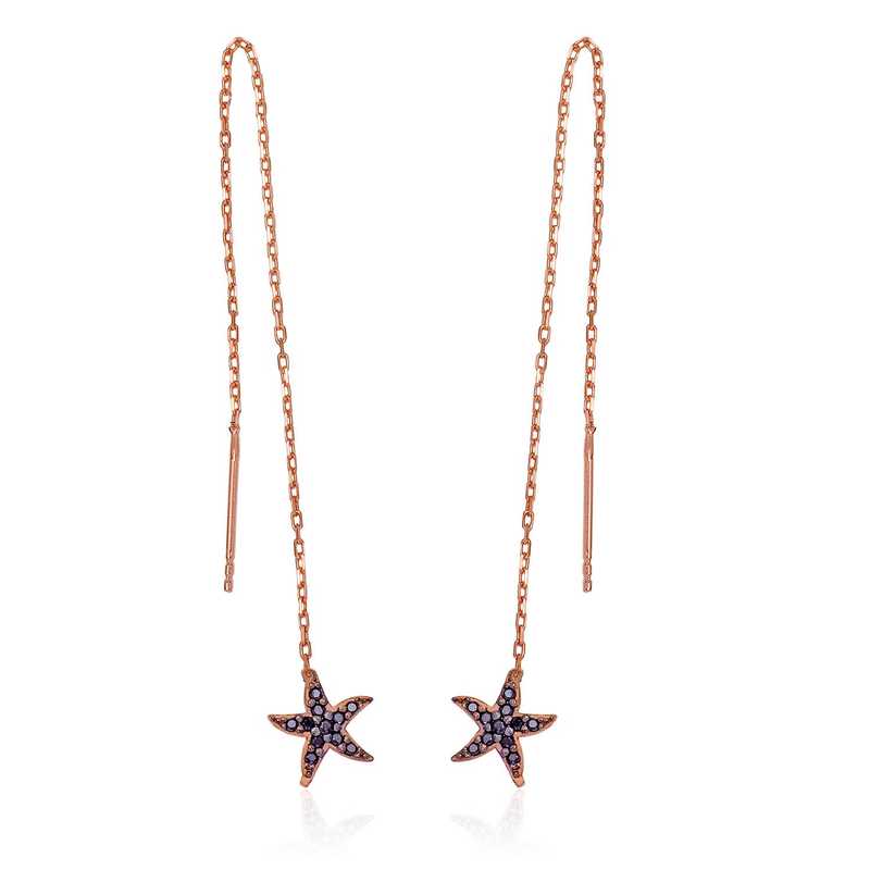 Deniz Yıldızı; ilahi aşkı, ilahi rehberliği, ilhamı, parlaklığı ve umudu sembolize eder. Gökyüzünden denizlere düşmüş deniz yıldızı ile ruhunuz, umut ve aşkla dolsun. Sevgilisini, kızını ya da arkadaşını sevindirmek isteyen herkesin alabileceği bir hediye seçeneğidir. Gümüş üzerine rose altın kaplama yapılmıştır. Rose altın kaplama yapılan gümüş küpe modelleri parlaklığını uzun süre muhafaza eder, gümüşe pembe rengi verir ve oksitlenmesini geciktirir. Küpenin üzerindeki taşlar zirkon'dur. Tüm gümüş küpe modellerinde olduğu gibi gümüş siyah taşlı deniz yıldızı zincirli küpe modeli de el emeği ile üretilmiştir. Gümüş ve değerli taşlar nedeniyle belirtilen ortalama ürün ağırlığında ± %10 sapma olabilmektedir.
