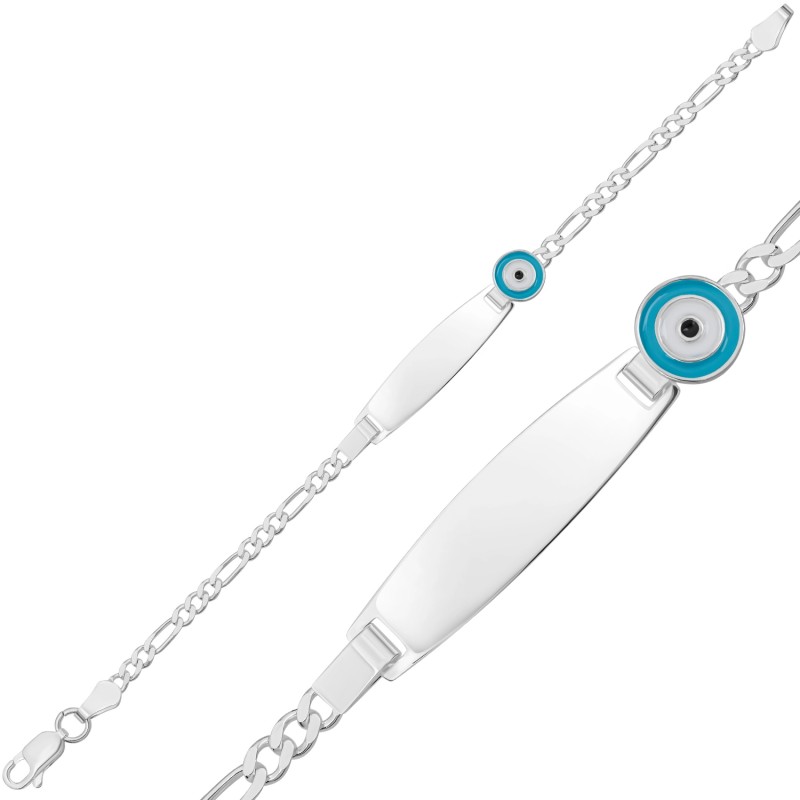 Kişiye Özel Açık Mavi Nazar Figürlü Gümüş Çocuk Künyesi