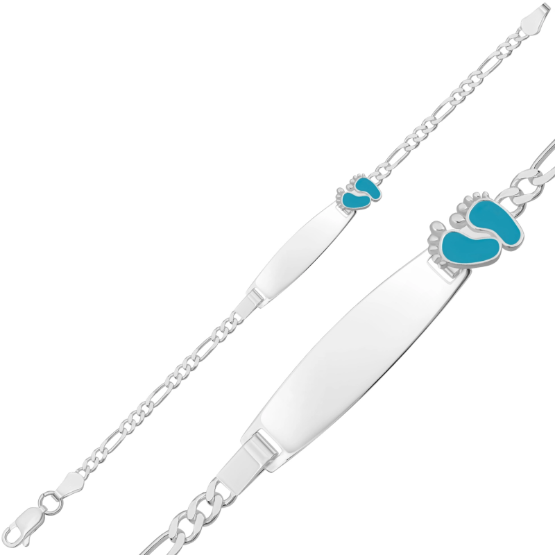 Kişiye Özel Mavi Ayak İzi Gümüş Bebek Künyesi