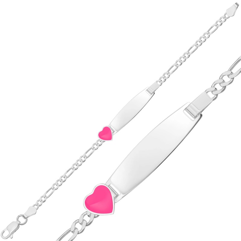 Kişiye Özel Pembe Kalp Figürlü Gümüş Çocuk Künyesi