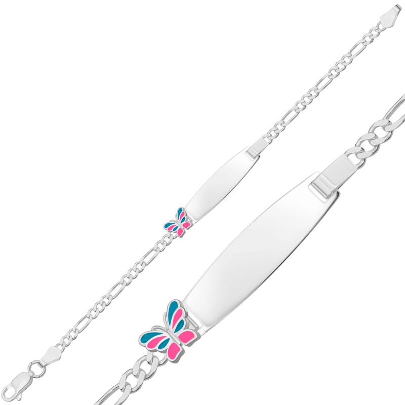 Kişiye Özel Pembe Mavi Kelebek Figürlü Gümüş Çocuk Künyesi