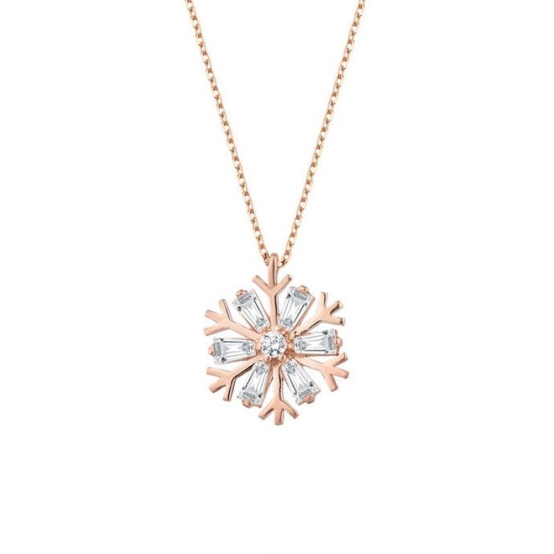 Baget Taşlı Kar Tanesi Gümüş Rose Kolye GMS1876