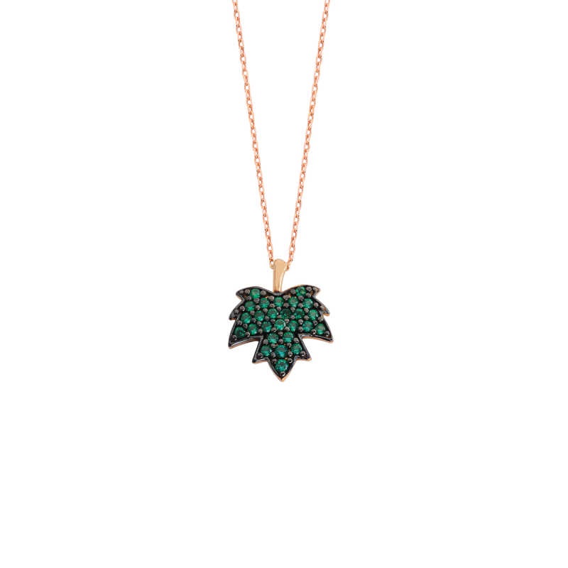 Çınar Yaprağı Taşlı Gümüş Kolye GMS1482