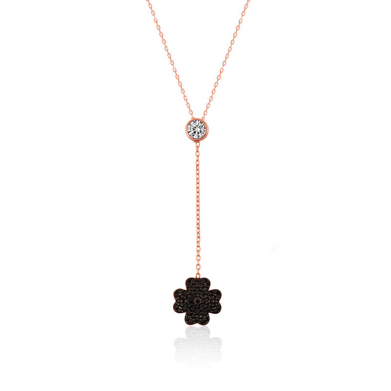 Gümüş Siyah Yonca Bayan Kolye