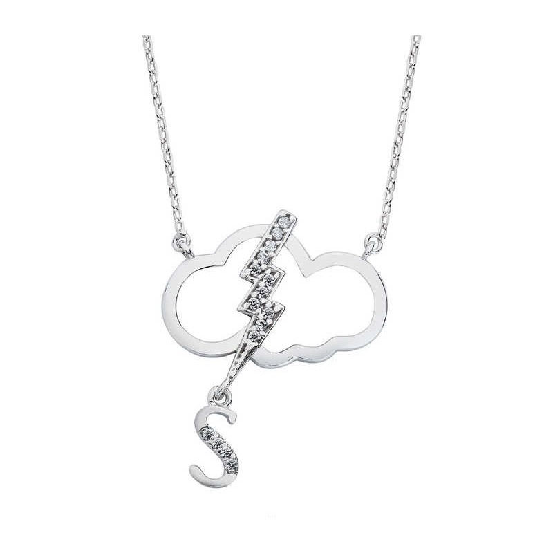 Harfli Bulut Şimşek Gümüş Beyaz Kolye GMS1775