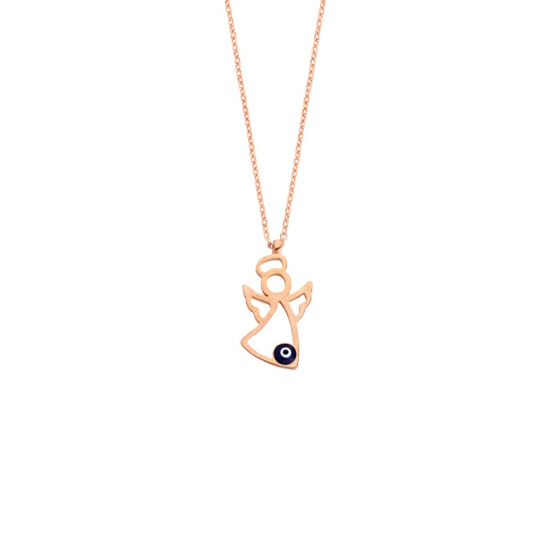 Nazar Boncuklu Melek Rose Gümüş Kolye GMS78