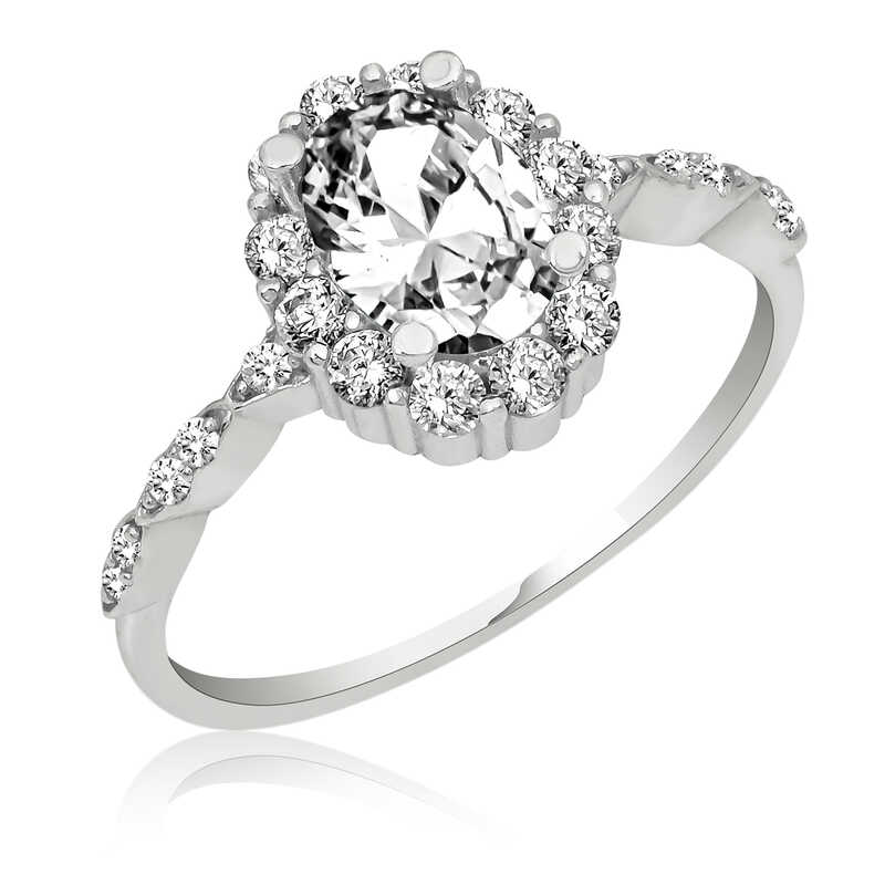 Gümüş Beyaz Oval Taşlı Kadın Yüzük