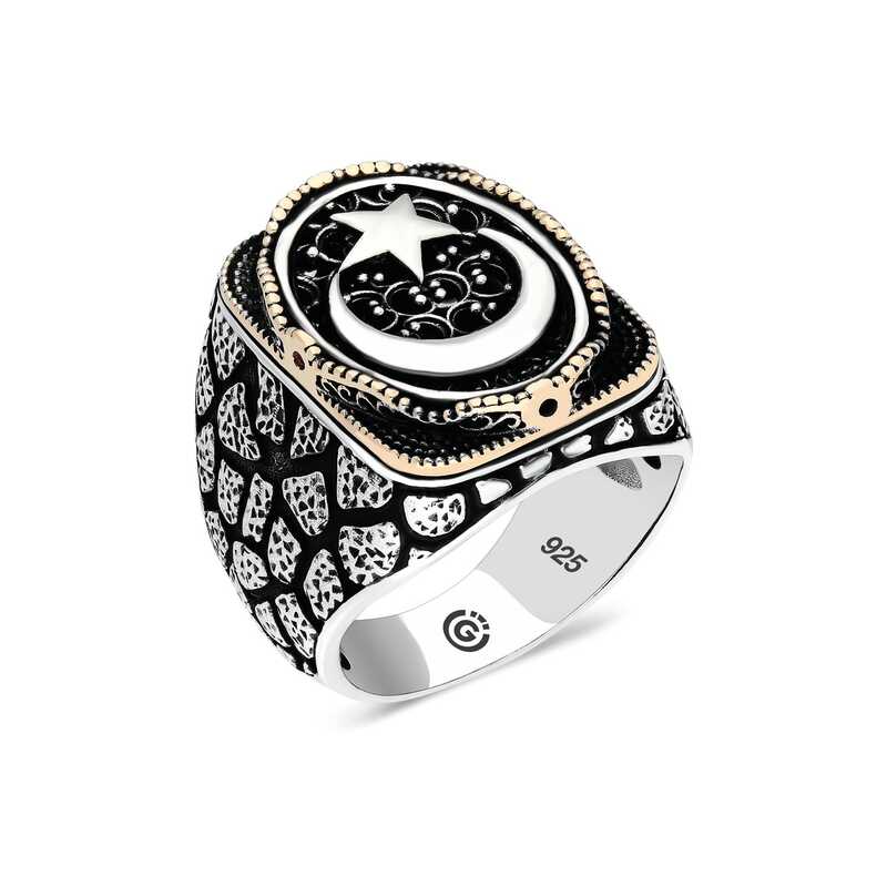 Gümüş Ay Yıldız Oval Erkek Yüzük