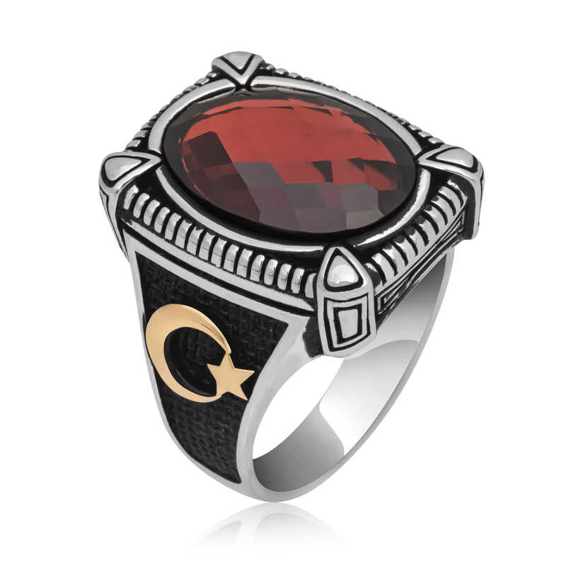 Gümüş Kırmızı Zirkon Taşlı Erkek Yüzük