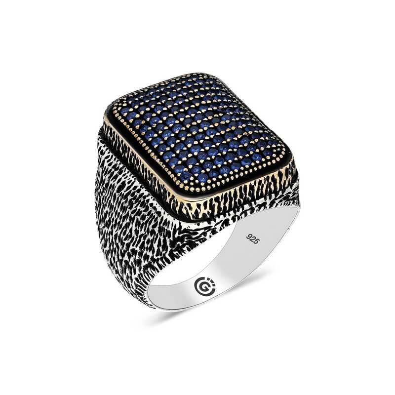 Gümüş Lacivert Zirkon Taşlı Kare Erkek Yüzük