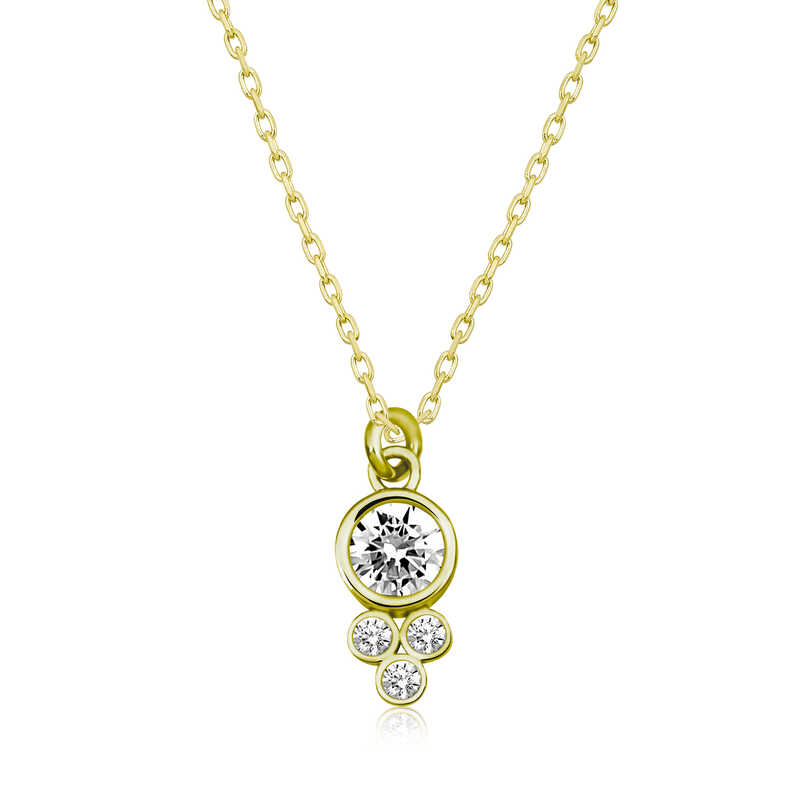 Gümüş Gold Çiğ Damlası Yuvarlak Tek Taş Bayan Kolye
