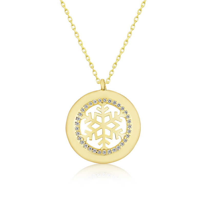 Gümüş Gold Kar Tanesi Bayan Kolye