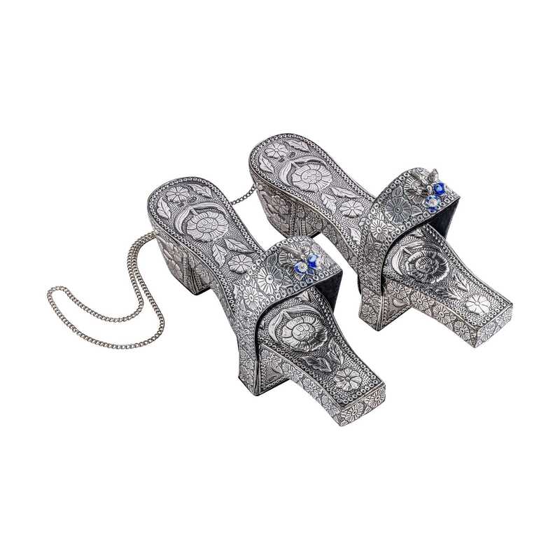 Takunyalar: Bir çift ayakkabı anlamına gelen naleyn” kelimesinden türetilmiştir. Kızgın hamam zemininden ayakları korumak için yapılmıştır. Gümüş çiçek desenli takunya modeli 925 ayar gümüşten imal edilmiştir. Gümüş üzerine oksit kaplama yapılmıştır. Oksit kaplama yapılan gümüşler parlaklığını uzun süre muhafaza eder, oksitlenmesi gecikir. Tüm ürünlerde olduğu gibi bu gümüş çiçek desenli takunya tamamı el emeği ile üretilmiştir. Gümüş ve değerli taşlar nedeniyle belirtilen ortalama ürün ağırlığında ± %10 sapma olabilmektedir.