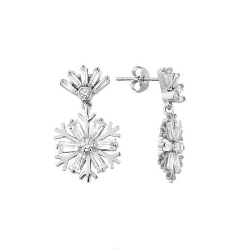 Baget Taşlı Kar Tanesi Gümüş Küpe GMS2118
