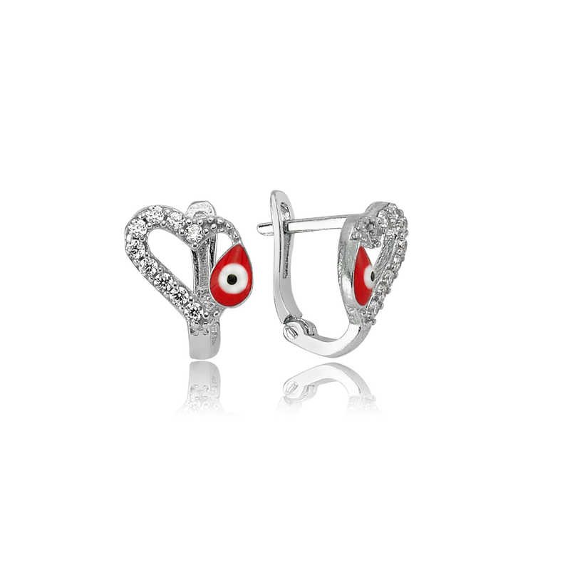 Gümüş Kırmızı Kalpli Çocuk Küpesi