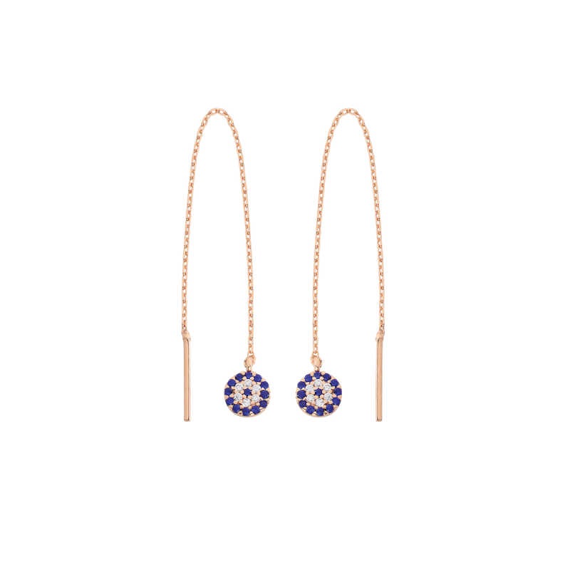 Sallantılı Zincirli Nazar Gümüş Küpe GMS667