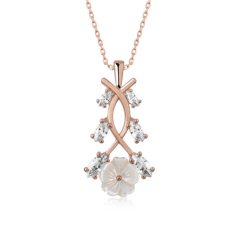 Havaların ısınmasıyla birlikte canlanan doğa, ilkbaharın geldiğini müjdeler. Yeşile bürünen ağaçlar, rengarenk çiçekler açar ve eşsiz kokuları ile bizi karşılar. Doğadan ilham alınarak tasarlanan bu kolye yeniden doğuşu ilkbaharı sembolize etmektedir. Bu şık kolye; doğum günü hediyesi, sevgililer günü veya özel günlerde tercih edilebilecek mükemmel bir seçenektir. Kolye; 925 ayar gümüşten imal edilmiştir.Gümüş üzerine rose kaplama yapılmıştır.Rose kaplama yapılan ürünler gümüşe pembe bakır rengi verir. Diğer kolyelerde olduğu gibi gümüş bahar çiçeği kolye de el emeği ile üretilmiştir. Gümüş ve değerli taşlar nedeniyle belirtilen ortalama ürün ağırlığında ± %10 sapma olabilmektedir.