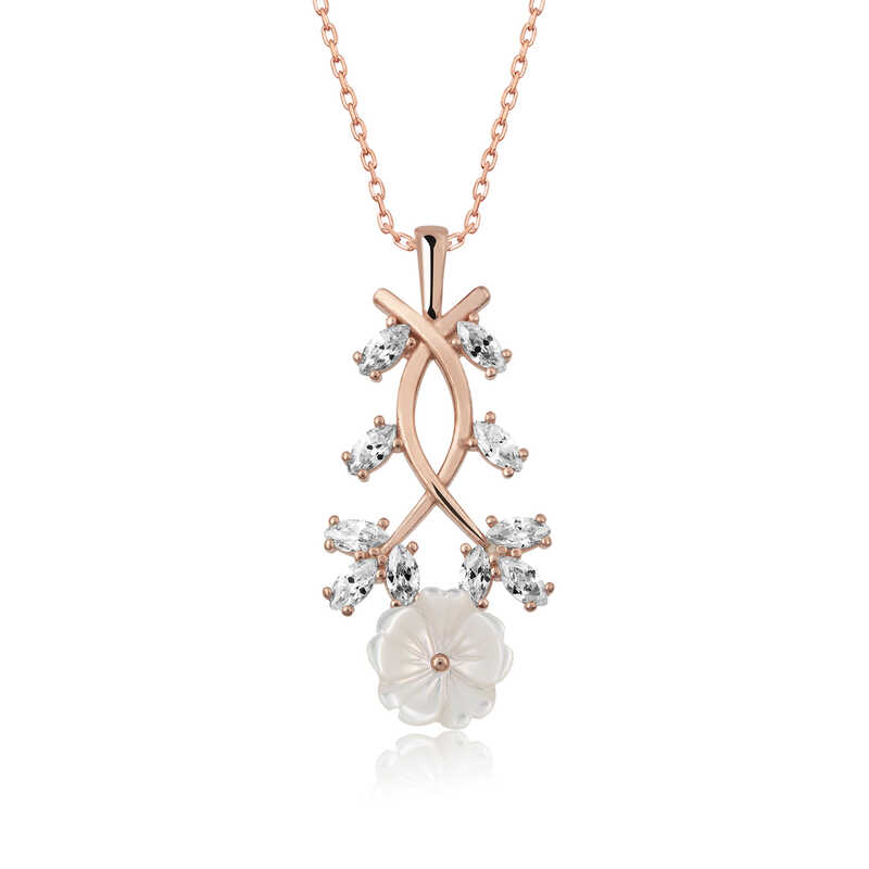 Havaların ısınmasıyla birlikte canlanan doğa, ilkbaharın geldiğini müjdeler. Yeşile bürünen ağaçlar, rengarenk çiçekler açar ve eşsiz kokuları ile bizi karşılar. Doğadan ilham alınarak tasarlanan bu kolye yeniden doğuşu ilkbaharı sembolize etmektedir. Bu şık kolye; doğum günü hediyesi, sevgililer günü veya özel günlerde tercih edilebilecek mükemmel bir seçenektir. Kolye; 925 ayar gümüşten imal edilmiştir. Gümüş üzerine rose kaplama yapılmıştır. Diğer kolyelerde olduğu gibi gümüş beyaz bahar çiçeği kolye de el emeği ile üretilmiştir. Gümüş ve değerli taşlar nedeniyle belirtilen ortalama ürün ağırlığında ± %10 sapma olabilmektedir.