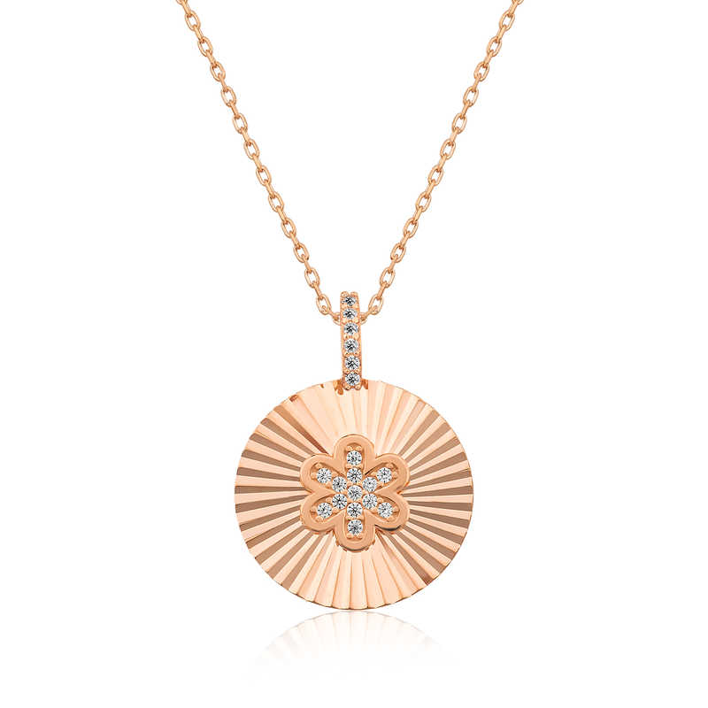 Sevdiklerinize duygularınızı ifade etmenin en özel ve zarif yolu O’na gönderebileceğiniz şık, rengarenk ve mis kokulu çiçeklerdir. Özel günlerde verilecek hediyeler arasında olan çiçek, bu kez gümüş kolye olarak tasarlandı... Fırfırlı çiçek kolye sevgisini bir kez daha anlatmak isteyenleri, sen bir çiçeksin demek isteyenleri bekliyor. Bu özel tasarım fırfır desenli çiçek bayan kolye 925 ayar gümüşten imal edilmiştir. Gümüş üzerine rose altın kaplama yapılmıştır. Rose altın kaplama yapılan gümüş bayan kolye modelleri parlaklığını uzun süre muhafaza eder ve oksitlenmesi gecikir. Kolye üzerinde bulunan beyaz taşlar zirkondur. Tüm bayan gümüş kolye modellerinde olduğu gibi gümüş fırfırlı çiçek bayan kolye de el emeği ile üretilmiştir. Gümüş ve değerli taşlar nedeniyle belirtilen ürün ağırlığında ± %10 sapma olabilmektedir.