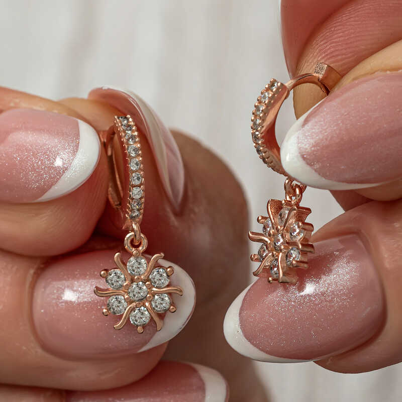 Gümüş Rose Sallantılı Güneş Kadın Küpe