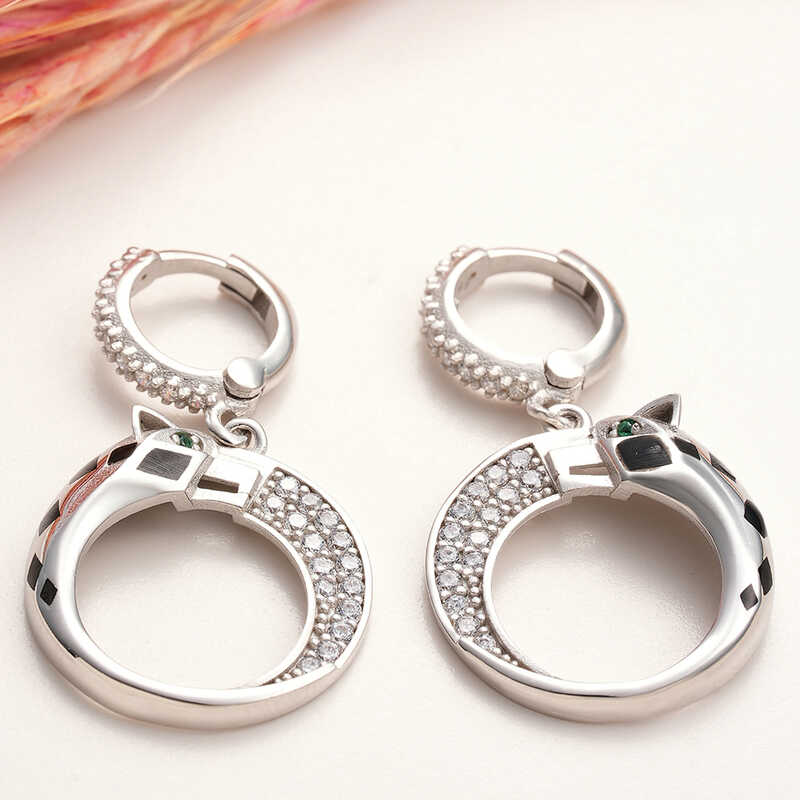 ​Gümüş Sallantılı Kaplan Figürlü Kadın Küpe