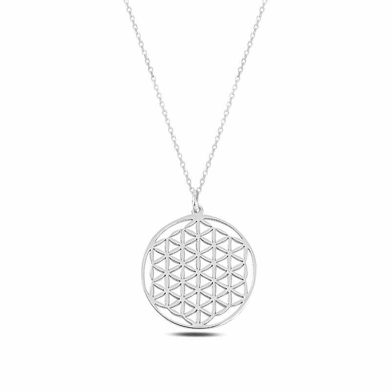 Yaşam çiçeği, iç içe geçmiş eşit alana sahip çok sayıda çember ve dışında büyük bir çemberden oluşan geometrik şekilden oluşmaktadır. Her bir çemberin merkezi, çevresindeki altı çemberin çevrelerinin kesiştiği yerdedir. Drunvalo Melchizedek bu sembolün evrenin ve yaşamın sırlarını barındırdığını iddia etmektedir. Günün her anında severek kullanabileceği hoş bir aksesuardır. Gümüş yaşam çiçeği bayan kolye 925 ayar gümüşten imal edilmiştir. Bu kolye üzerine rodyum kaplama yapılmıştır. Rodyum kaplama yapılan ürünler parlaklığını uzun süre muhafaza eder. Tüm gümüş bayan kolye modellerinde olduğu gibi gümüş yaşam çiçeği bayan kolye modeli de el emeği ile üretilmiştir. Gümüş ve değerli taşlar nedeniyle belirtilen ortalama ürün ağırlığında ± %10 sapma olabilmektedir. Ürünlerimizin tamamı el emeği ile üretilmiştir.