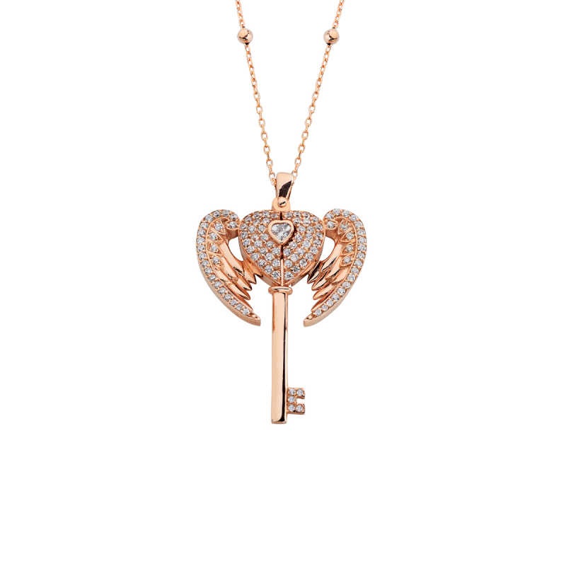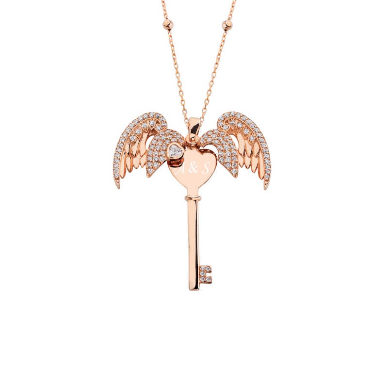 Melek Kanatlı İsimli Anahtar Gümüş Kolye GMS1011