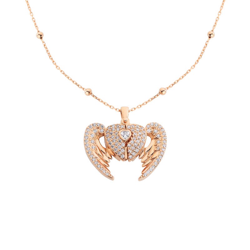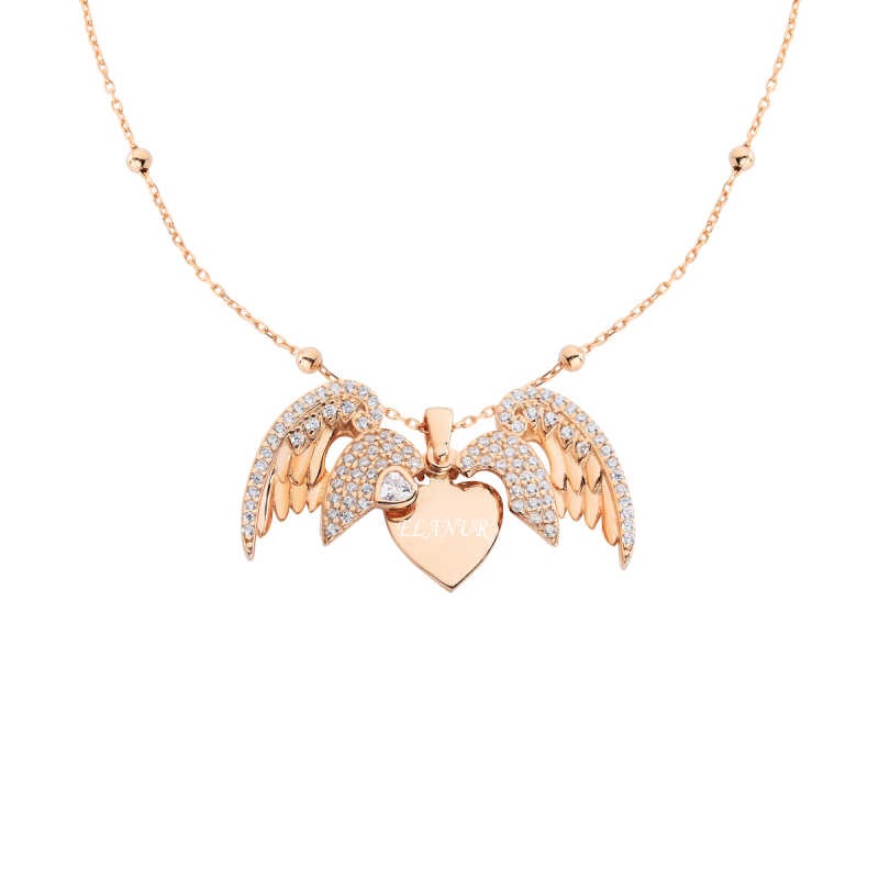 Melek Kanatlı İsimli Kalpli Gümüş Kolye GMS899