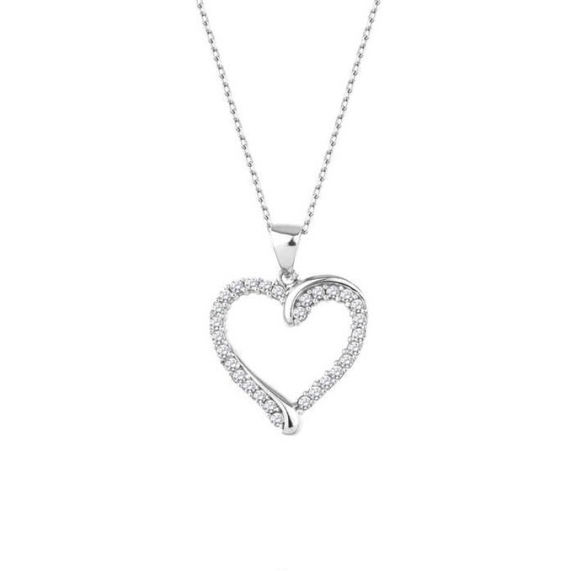 Sıra Taşlı Kalp Gümüş Kolye GMS1955