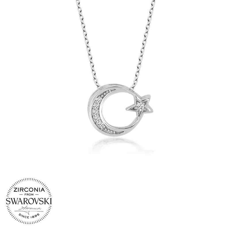 Swarovski Taşlı Gümüş Ayyıldız Bayan Kolye