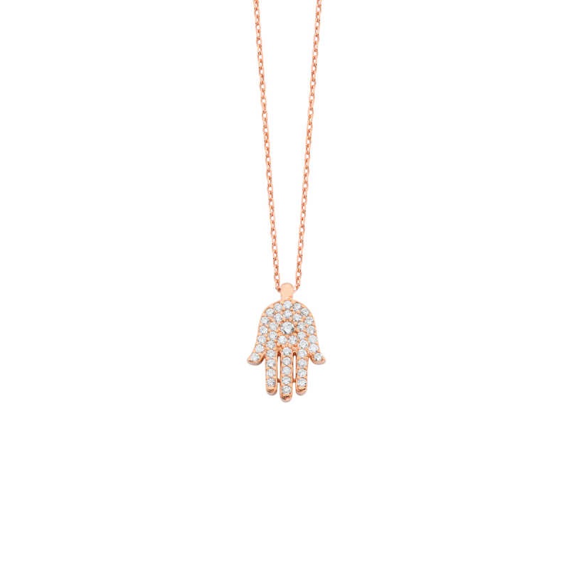 Taşlı Fatma Ana Eli Gümüş Kolye GMS1415