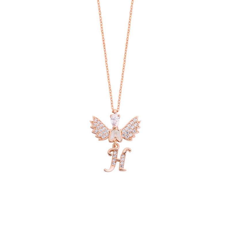 Taşlı Melek Harfli Gümüş Kolye GMS1502