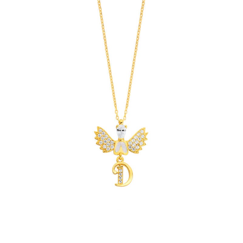 Taşlı Melek Harfli Gümüş Kolye GMS1503