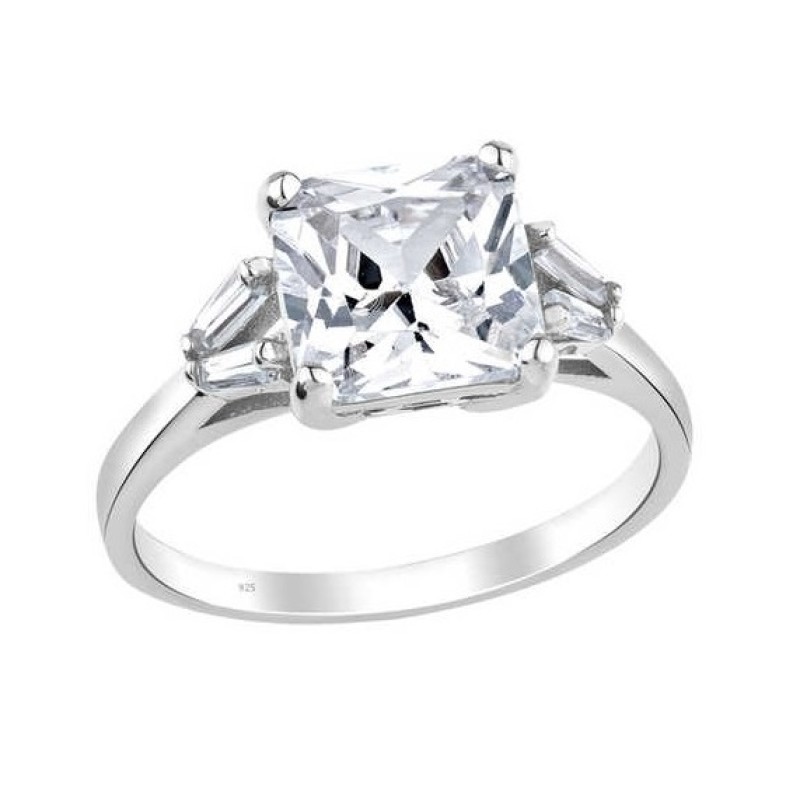 Trapez Zemin Prenses Kesim Tek Taş Gümüş Beyaz Yüzük GMS1978