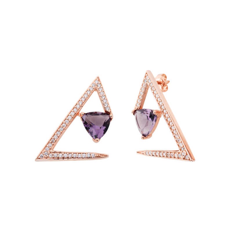 Üçgen Taşlı Abiye Gümüş Küpe GMS699