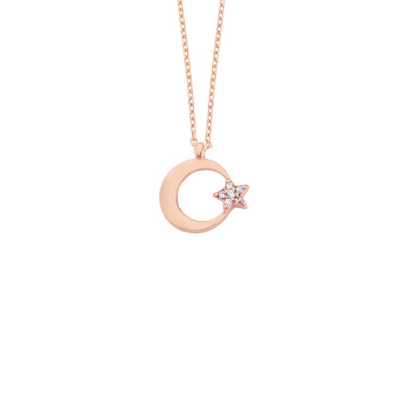 Zarif Ay Yıldız Gümüş Kolye GMS1132