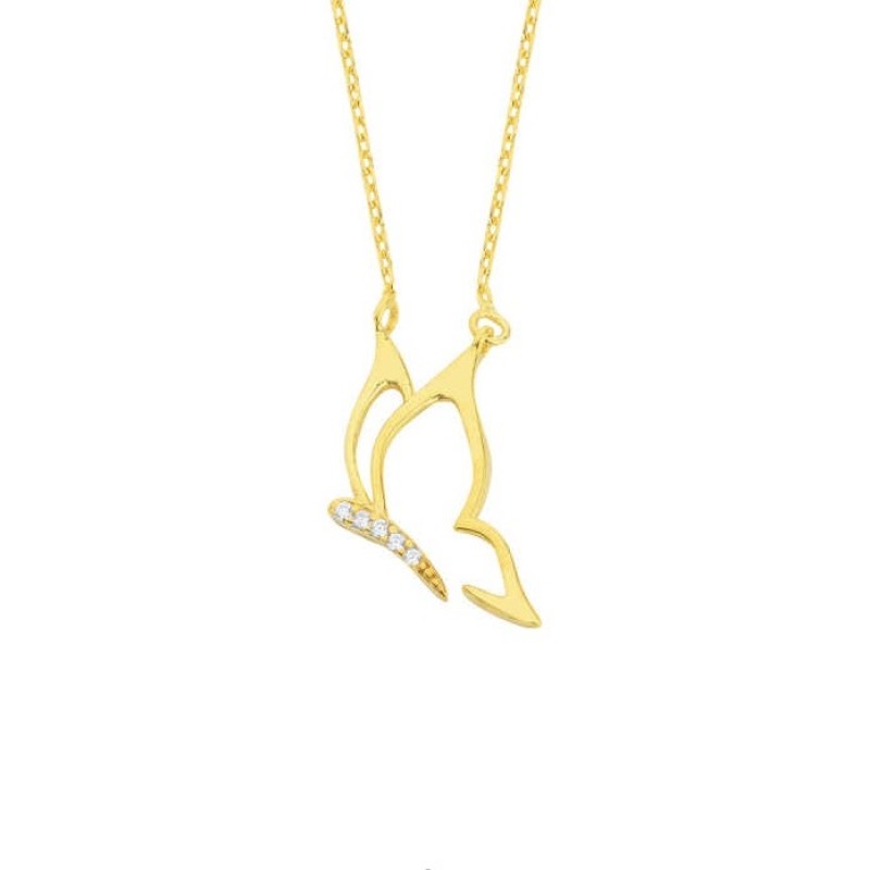 Zarif Kelebek Gümüş Sarı Kolye GMS1809
