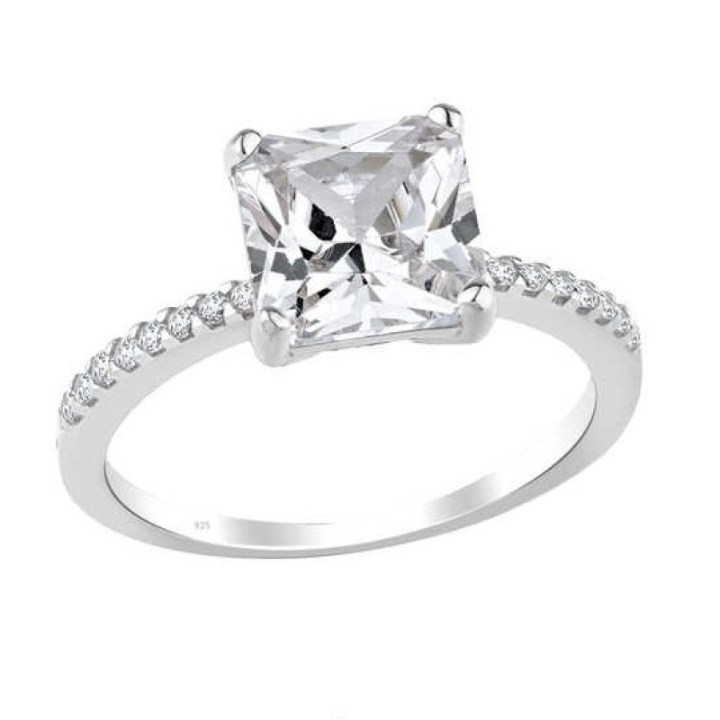 Zemin Taşlı Prenses Kesim Tek Taş Gümüş Beyaz Yüzük GMS1975