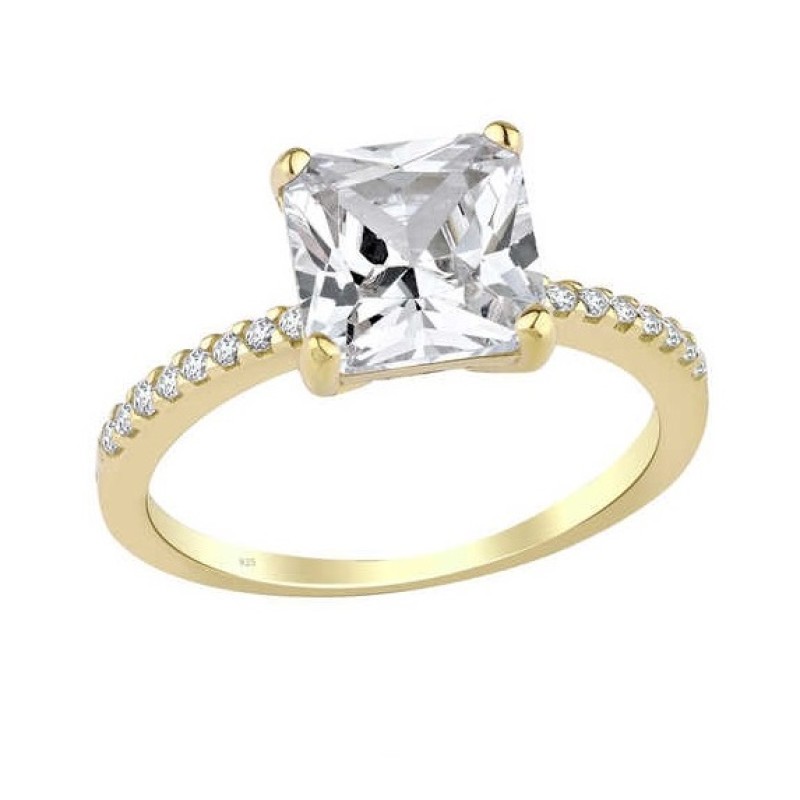 Zemin Taşlı Prenses Kesim Tek Taş Gümüş Sarı Yüzük GMS1977