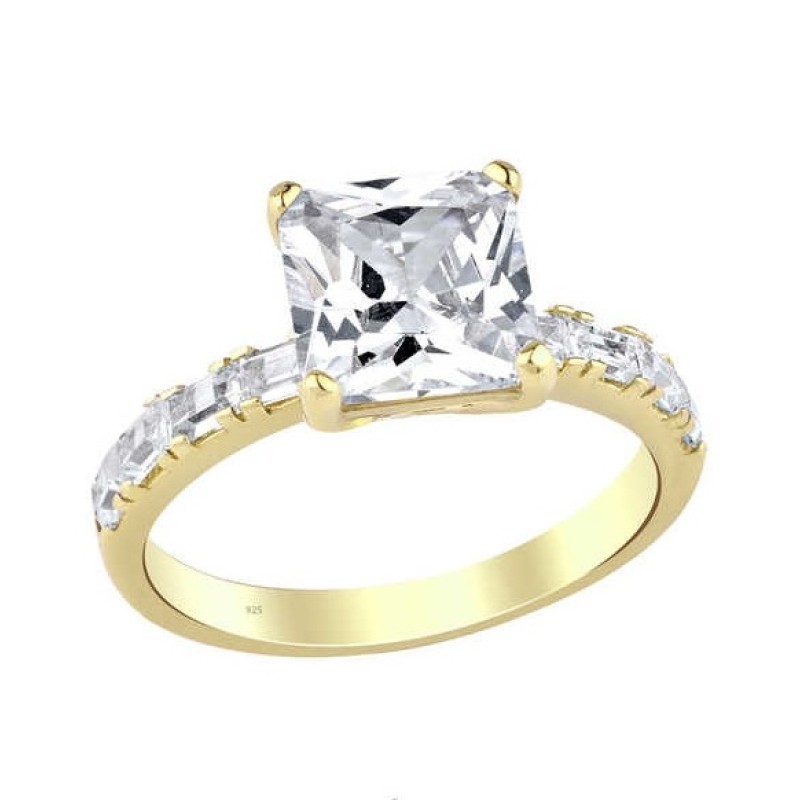Zemin Taşlı Prenses Kesim Tek Taş Gümüş Sarı Yüzük GMS1983