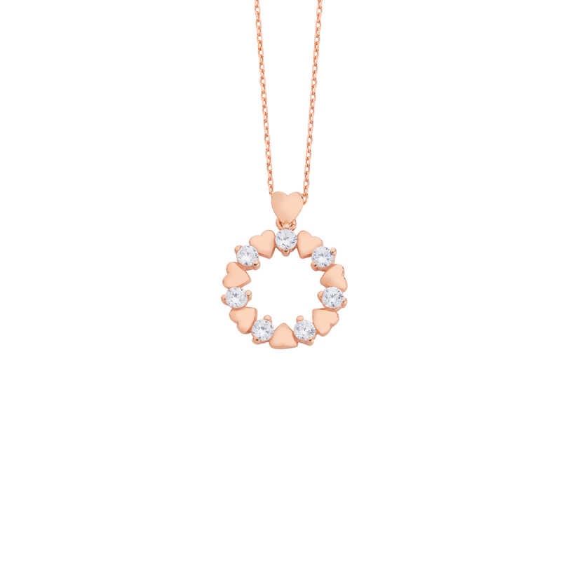 Zirkon Taşlı Minik Kalpler Gümüş Kolye GMS1180