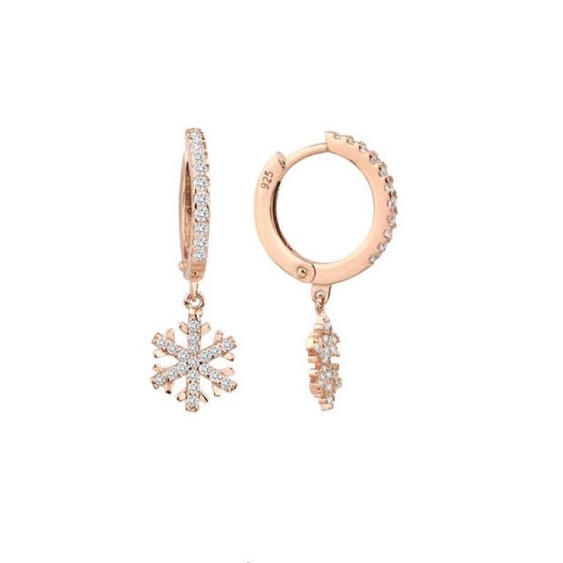 Zirkon Taşlı Sallantı Kar Tanesi Rose Renk Gümüş Küpe GMS2113