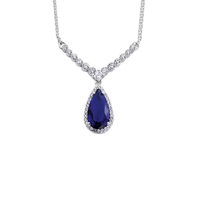 Zirkon Taşlı V Montür Damla Gümüş Kolye GMS1206