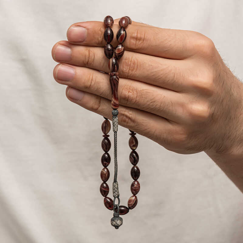 Kehribar, çam ağacı reçinesinin toprak altında uzun yıllar boyunca birikerek oluşan bir maddedir. Hemen hemen taş ile aynı sertliktedir fakat yoğunluğu düşüktür. Çam kokusu yayar. Oluşumu uzun zaman aldığından ve yapay olarak yapılamadığından değerli bir maddedir. Sıkma kehribar ise kehribar taşından farklı olarak onun özelliklerini taşıyan, görüntü itibariyle ona benzeyen fakat gerçek olmayan bir malzemedir. Ülkemizde ve dünyanın bir çok yerinde kehribar taşından çeşitli malzemeler üretilmiştir. Ülkemizde en yaygın olarak tesbih üretilmektedir. Kehribar tesbihler elde ısındıkça kehribar benzeri bir koku verir ve renk değiştirir. Bir çok rengi vardır. Hatta iki rengin birleşiminden oluşan kehribar tesbih modelleri de vardır. Genellikle gümüş püskül ile kullanılır veya sistemli olarak da kullanılabilir. Ülkemizin güzide tesbih ustaları bu malzemeyi sıklıkla işlemek suretiyle çeşitli sanat eserleri meydana getirirler. Bu tesbihler de koleksiyonerler tarafından alınıp satılmaktadır. Gümüş 1000 ayar kazaz püsküllü sıkma kehribar tesbih modeli de günlük hayatta kullanılabilecek çok şık bir tesbih çeşididir. Özel günlerin vazgeçilmez hediyesi sıkma kehribar tesbihler erkekler için doğum günü, sevgililer günü ve babalar günü gibi özel zamanlarda hediye olarak tercih edilebilir. Gümüş kazaz püsküllü sıkma kehribar tesbih modeli diğer kehribar tesbih modellerinde olduğu gibi tamamen el emeği ile imal edilmiştir.