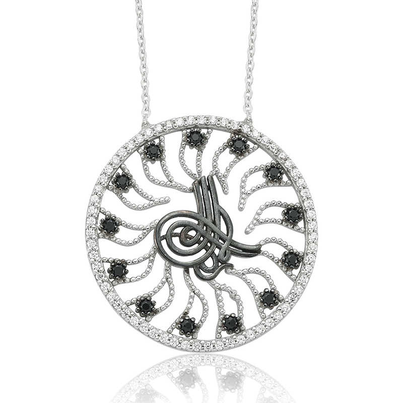 Tuğra; padişahın ismini ihtiva eden özel bir işaret, basılmış imzasıdır. Bu tuğra kolye türkler'de devleti temsil eden hükümdarlık alâmeti kolyeye sahip olabilir sevdiklerinizi sevindirebilirsiniz. Tuğra bayan kolye 925 ayar gümüşten imal edilmiştir. Gümüş üzerine rodyum kaplama yapılmıştır. Rodyum kaplama yapılan modeller parlaklığını uzun süre muhafaza eder ve oksitlenmesi gecikir. Üzerinde bulunan taşlar zirkondur. Zincir boyu ortalama 45 cm'dir. Bu tuğra bayan kolye el emeği ile üretilmiştir. Gümüş ve değerli taşlar nedeniyle belirtilen ortalama ürün ağırlığında ± %10 sapma olabilmektedir.